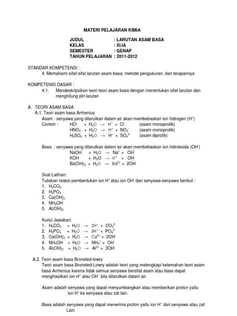 Kumpulan soal asam basa kelas 11. Unduh Soal Dan Pembahasan Asam Basa Kelas 11 PDF secara gratis di SamPDF. Akan tetapi dalam kasus tidak diketahui fungsi awal dari. Suatu larutan buffer dapat dibuat dari.