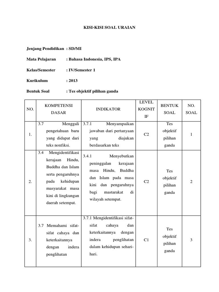 Doc Soal Ipa Kelas Iv Sd Semester 1 Nasmin Baso Ali Academia Edu