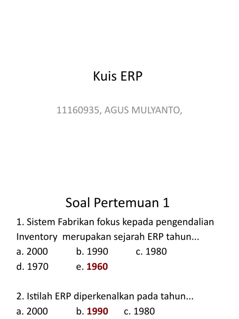 Penjelasan Pengembangan Enterprise Resource Planning ERPBerikut beberapa soal yang berkaitan dengan pengembangan enterprise resource planning ERP Sistem Pengolahan Transaksi. Latihan soal Erp terdiri dari 10 butir soal.