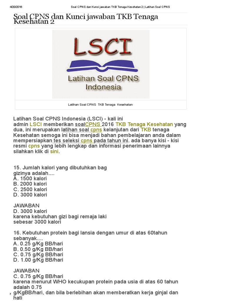 Soal Cpns Dan Kunci Jawaban Gratis Tkb Kesehatan Latihan Soal Cpns