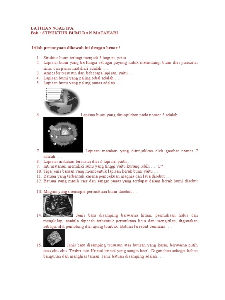 Soal ipa kelas 5 pelapukan batuan. Contoh Soal UASUKK IPA kelas 5 ini sebagai acuan bagi adik-adik yang akan melaksanakan ulangan kenaikan kelas pada semester 2 genap akhir. Lapisan bumi paling luar. Setiap bab di dalam Daftar Materi IPA Kelas 5 ini kami lengkapi dengan Tujuan Pembelajaran dan Peta Konsep sehingga kalian bisa mengetahui untuk apa kalian mempelajari bab itu.