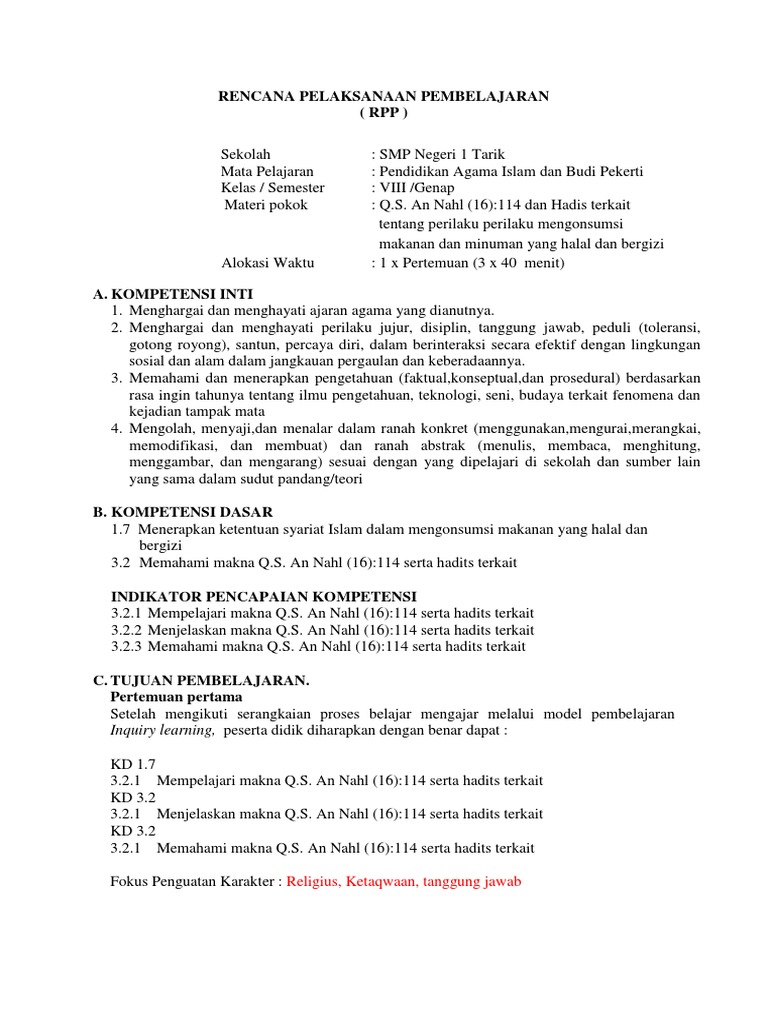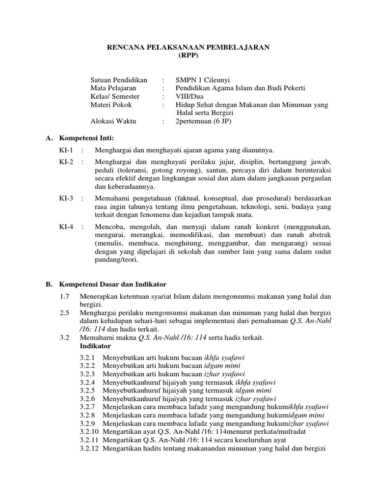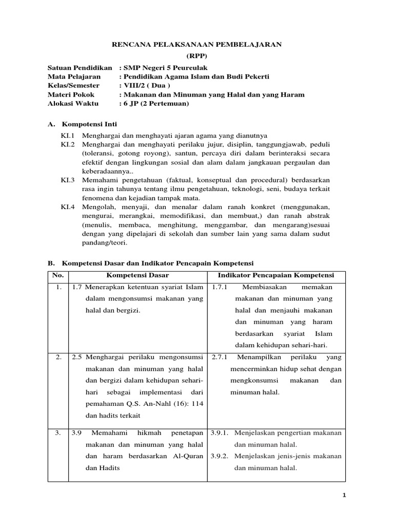 Rpp Pai Kelas 8 Semester 2 Tahun 2020 2021 Materi Ketentuan Makanan Dan Minuman Yang Halal Dan Haram Vadcoy Com
