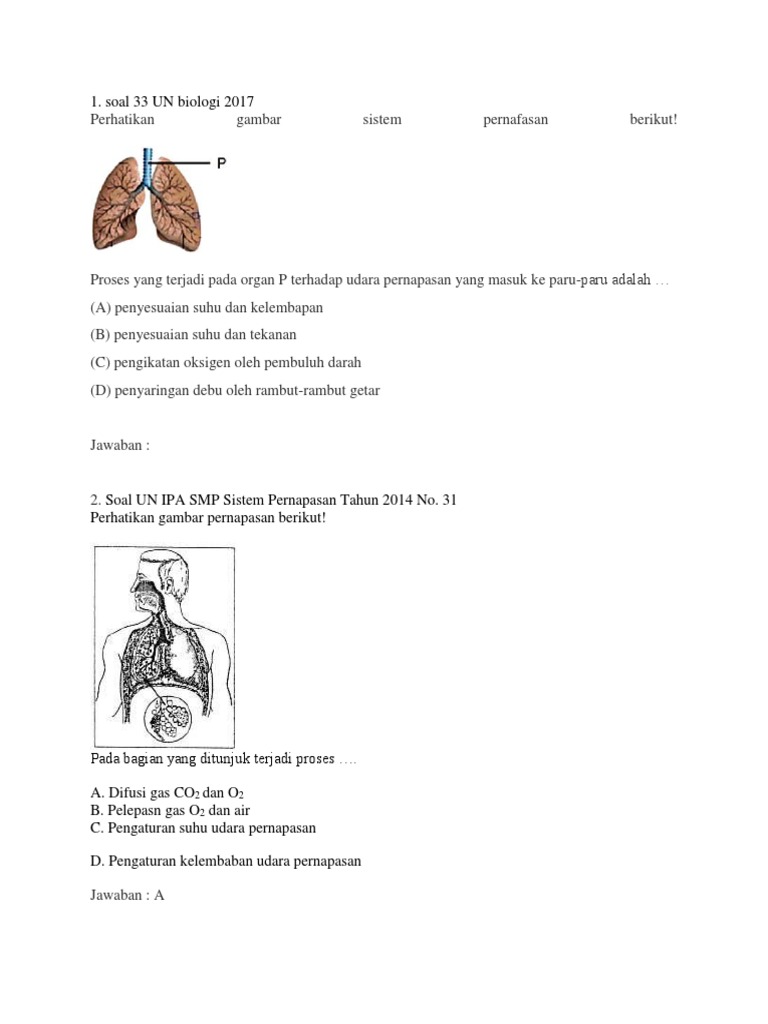 Ringkasan Dan Latihan Soal Un Ipa Smp Mts Materi Sistem Pernapasan
